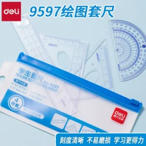 Deli Stationery 9597 Set Penggaris Gambar Siswa (penggaris 15cm, penggaris segitiga 45?/60?, busur derajat, dll.)
