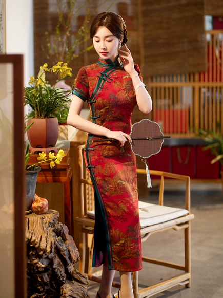 Cheongsam gaya Shanghai kuno untuk wanita, gaya baru musim panas 2023, temperamen yang lebih baik, gaya Tiongkok retro sehari-hari, panjang dan ramping.