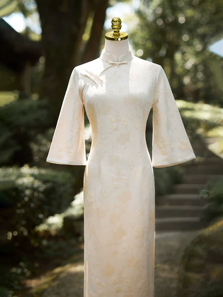 Cheongsam krem ??model baru 2026 untuk wanita, gaya musim semi/musim panas terbaru ala Tiongkok, gaun muda yang disempurnakan, cocok untuk dipakai sehari-hari dengan lengan lebar. quantity