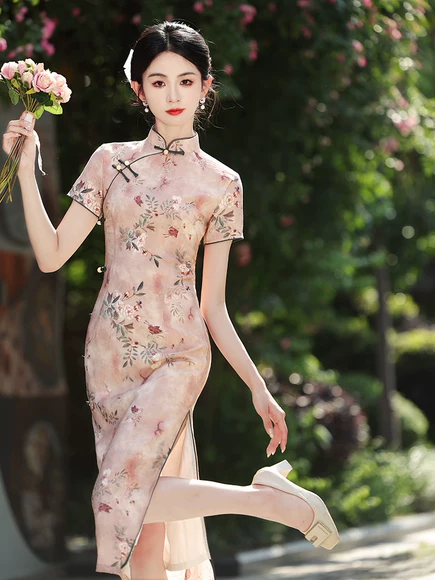Cheongsam trendi musim panas 2025 terbaru, menampilkan gaya Shanghai klasik, sempurna untuk wanita muda, dengan estetika Tiongkok retro.