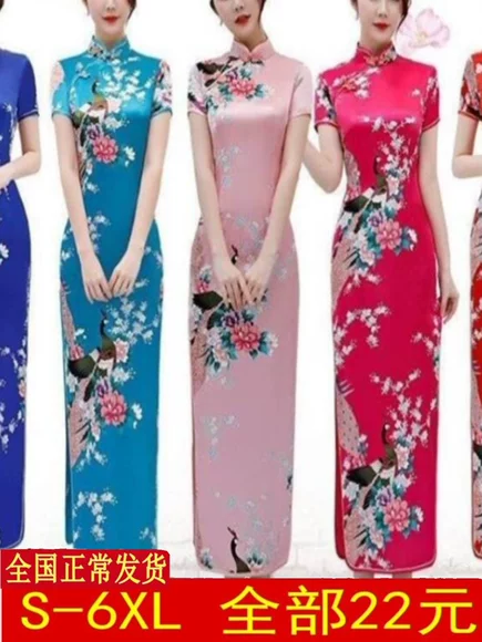 Cheongsam panjang, ukuran besar, gaun cheongsam lengan pendek modis, gaun peragaan busana, gaun sehari-hari, elegan, indah, retro. quantity