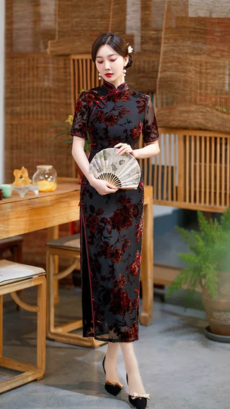 Cheongsam retro dengan nuansa mewah, gaya baru 2025, meningkatkan temperamen awet muda, gaun mewah, anggun, dan elegan untuk wanita, musim panas. quantity