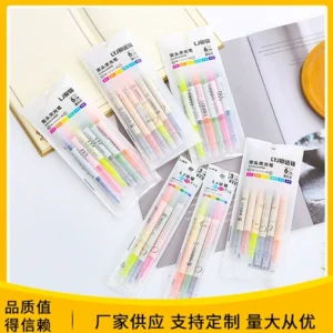 Stabilo warna dua ujung, spidol dua ujung, spidol garis, pena jurnal coretan siswa, pena cat air miring