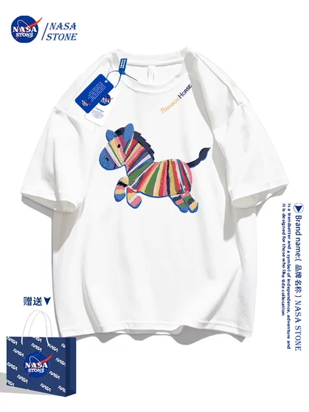 Kaos lengan pendek edisi Tahun Kuda hasil kolaborasi NASA, unisex, model baru 2026, katun murni, serbaguna, cocok untuk pelajar.
