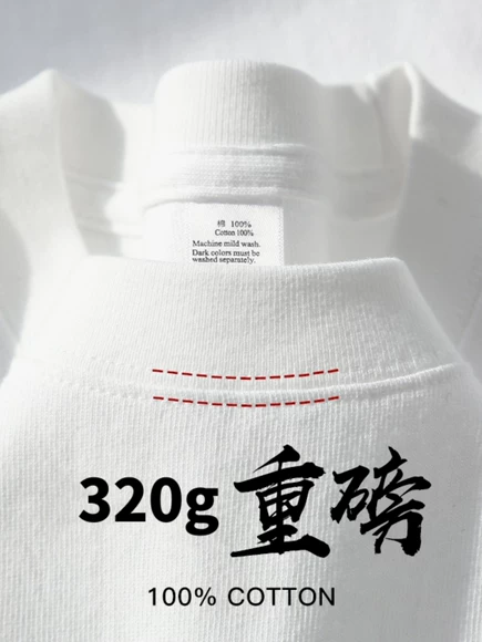 Kaos Lengan Pendek Gaya Amerika, Tebal, Tidak Transparan, Longgar, Ukuran Besar, Katun Murni, Unisex, Putih, Lengan Pendek, Berat 320g