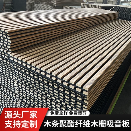 Papan peredam suara strip kayu serat poliester, papan insulasi suara, kisi-kisi dekorasi dinding bioskop, panel dinding pabrik lintas batas, kapas insulasi suara.