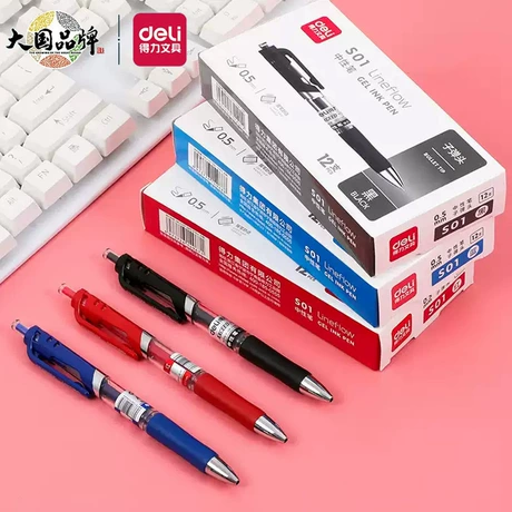 Pulpen Ballpoint Deli Stationery S01, Pulpen Gel yang Dapat Ditarik, 0,5mm, Pulpen Karbon Hitam untuk Pelajar, Pulpen Tanda Tangan Kantor