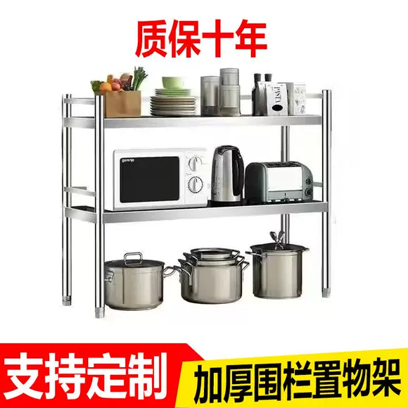 / Rak penyimpanan dapur dari baja tahan karat tebal, dua atau tiga tingkat, rak oven microwave, rak panci, rak bumbu, rak penyimpanan berdiri di lantai.
