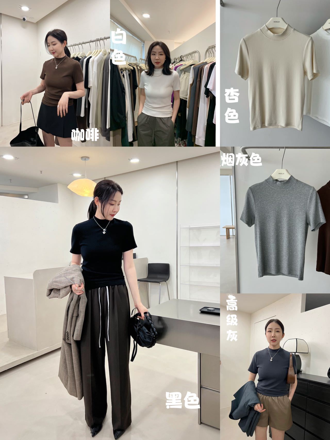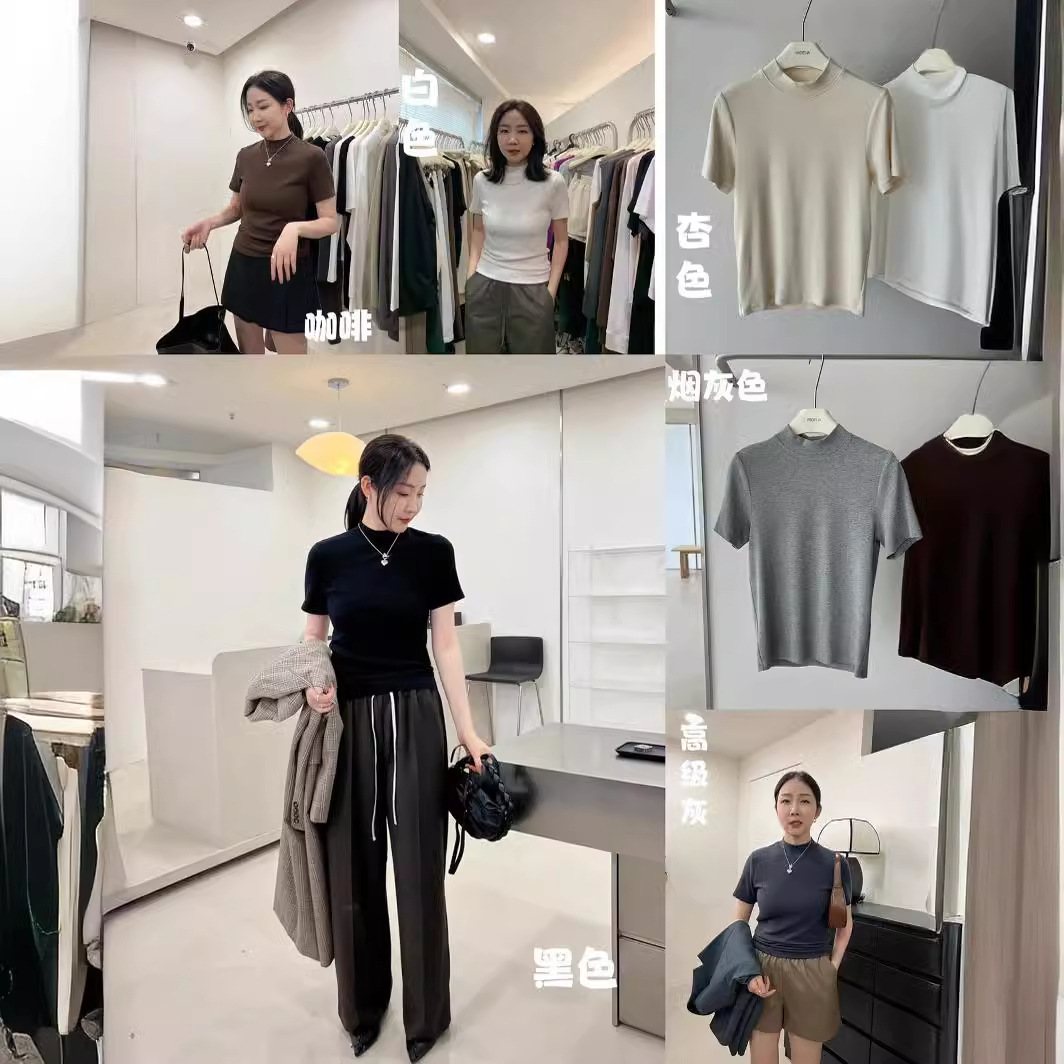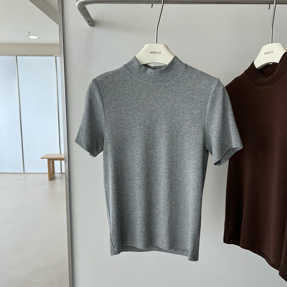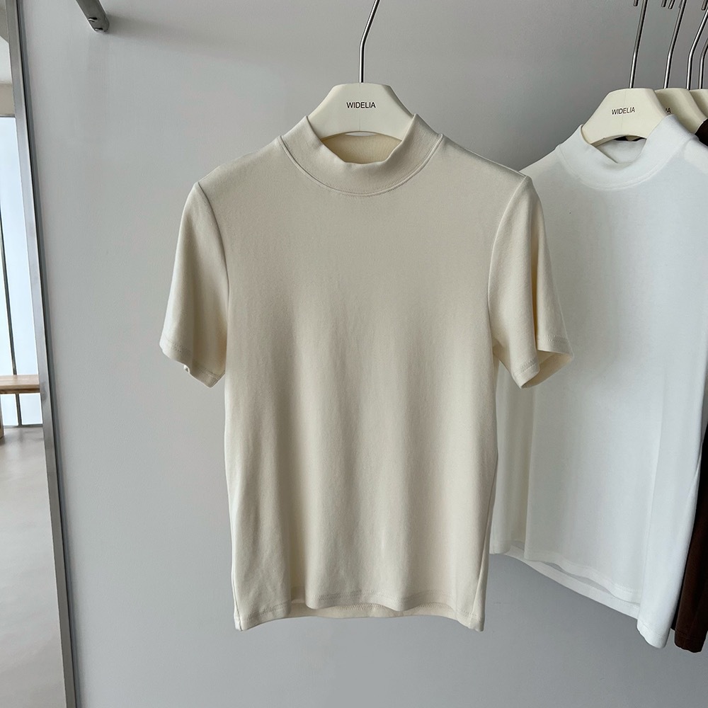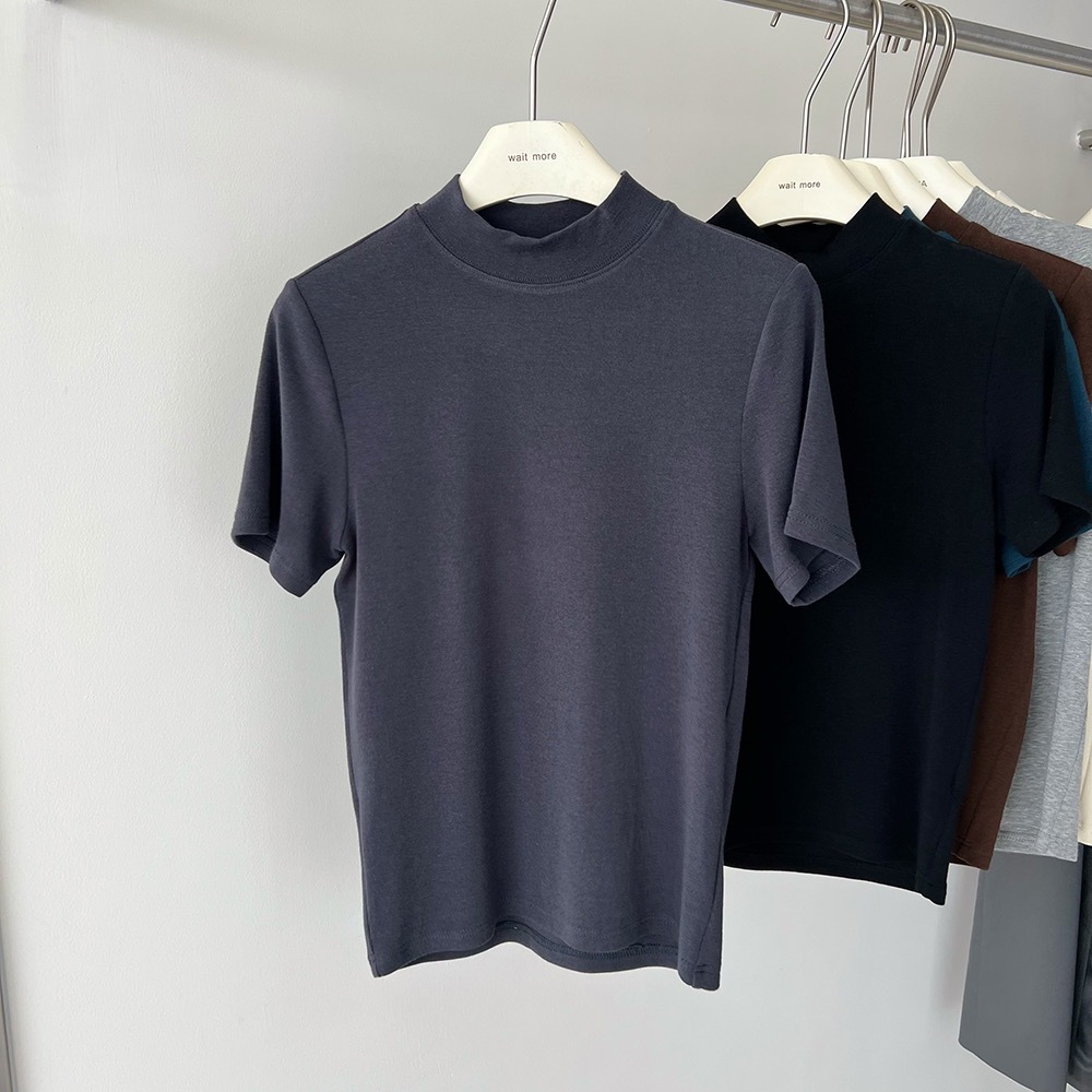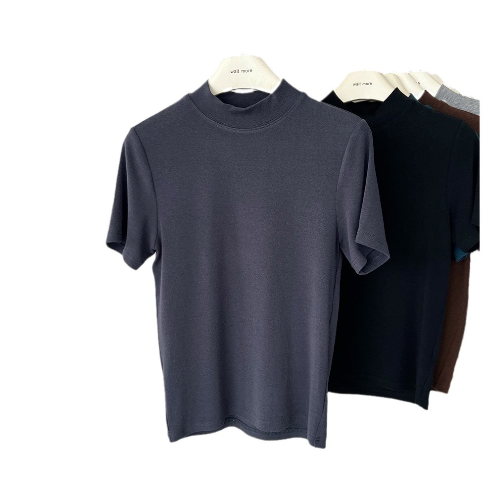 Spring and summer new T-shirt proprietress with the same small stand-up collar short-sleeved base shirt solid color T inner trim high elastic top girl