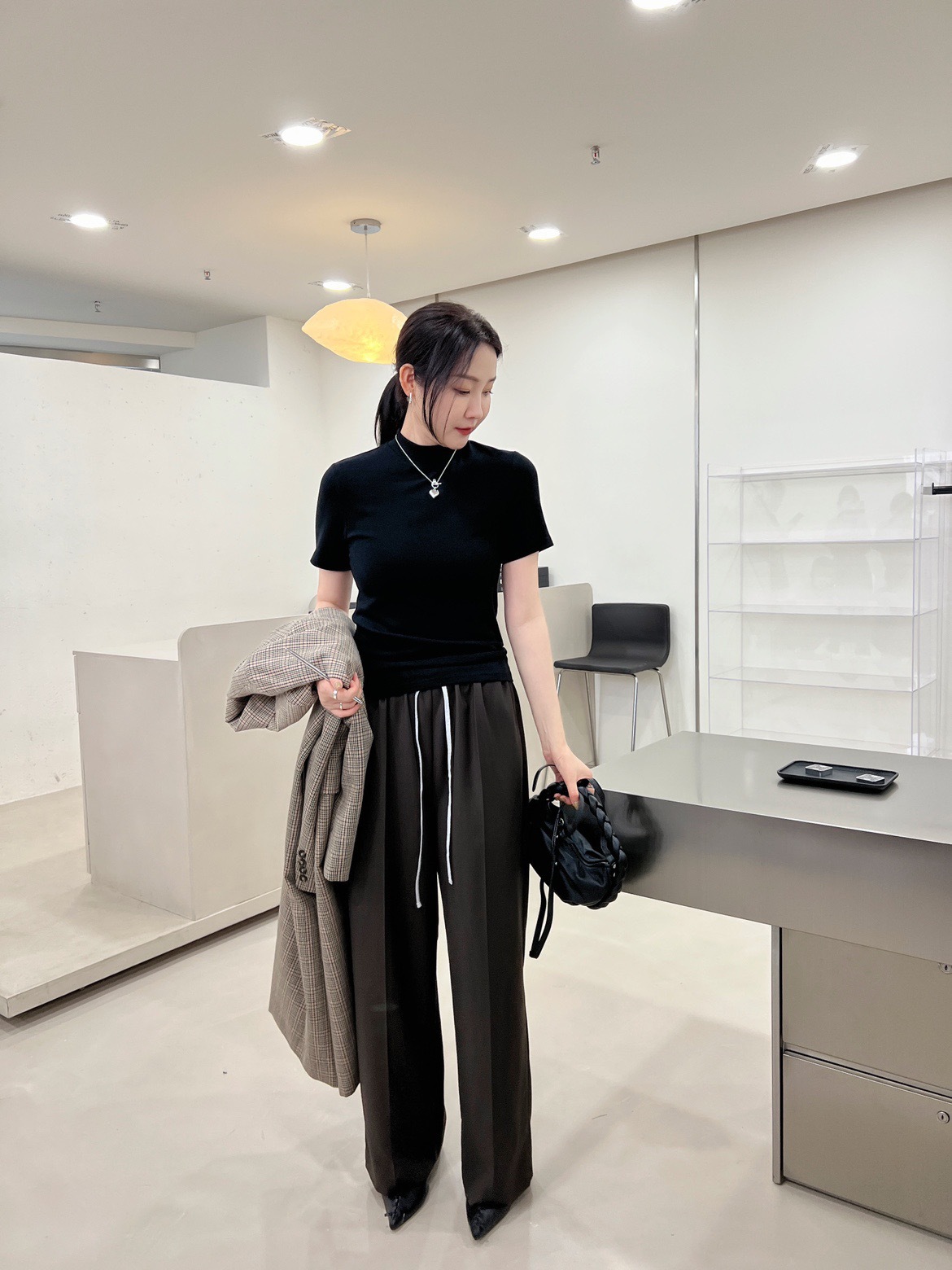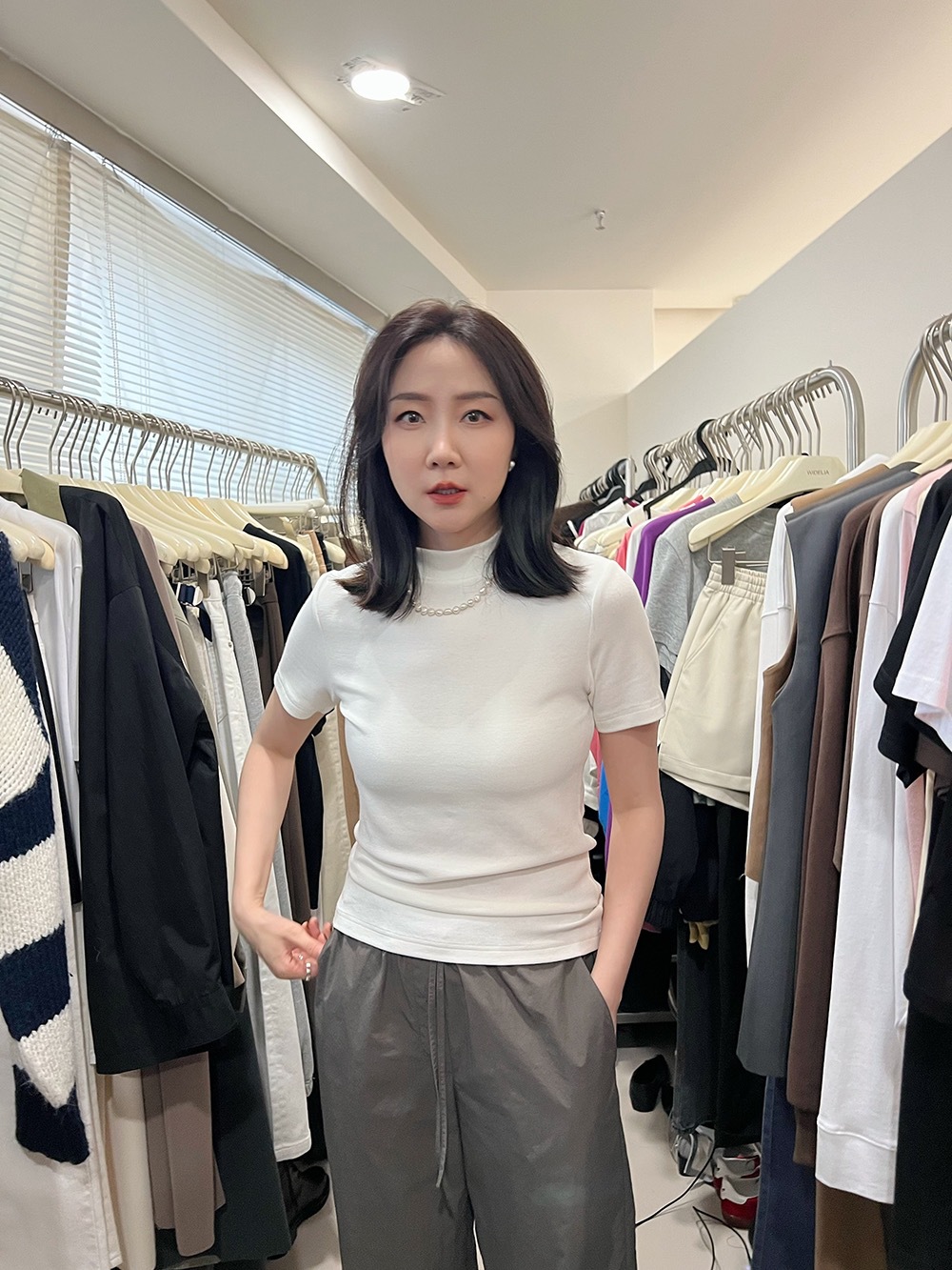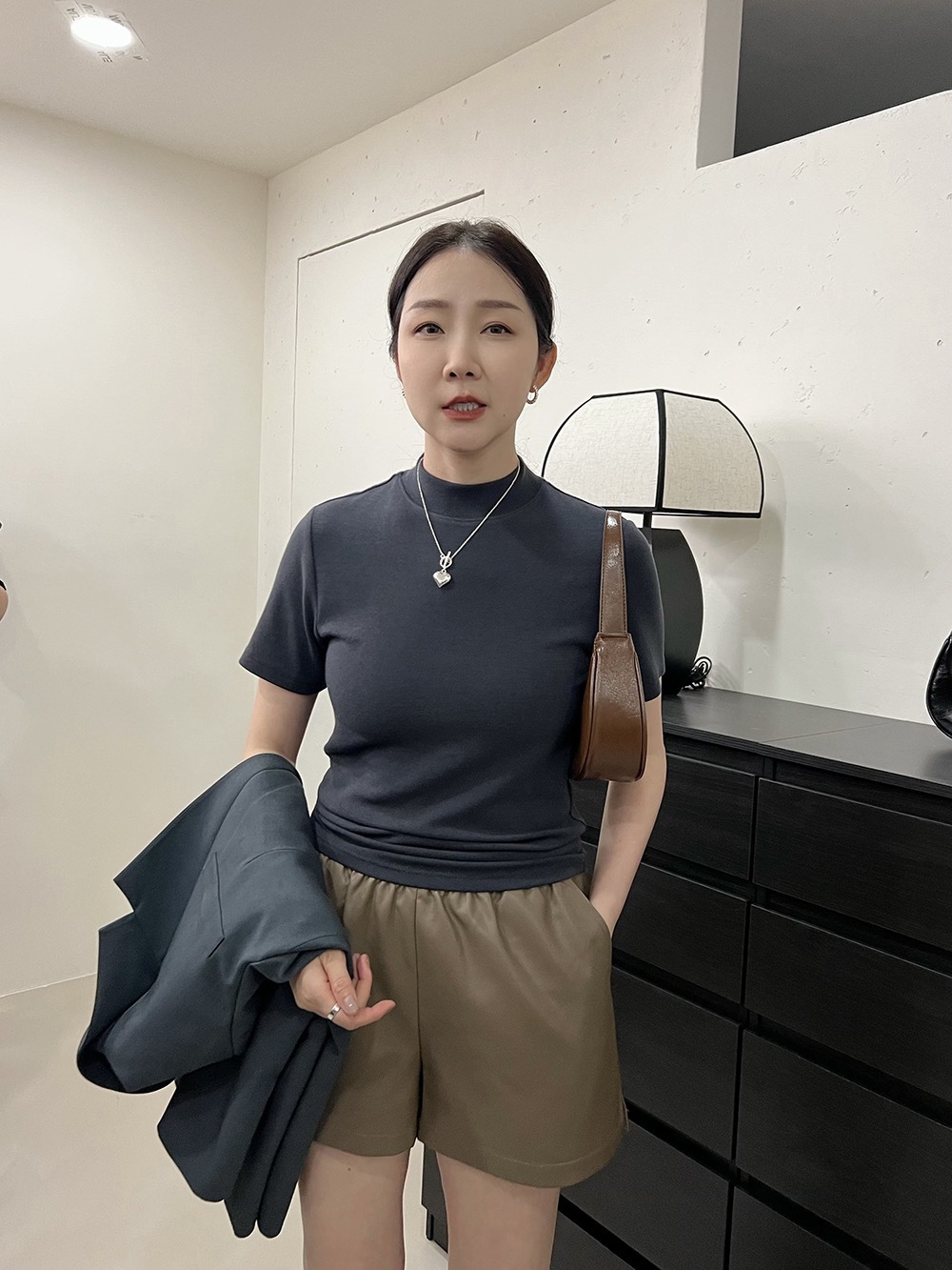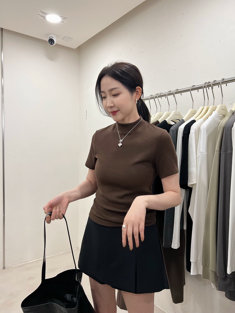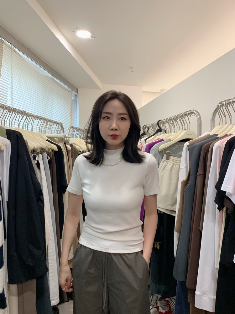 Spring and summer new T-shirt proprietress with the same small stand-up collar short-sleeved base shirt solid color T inner trim high elastic top girl